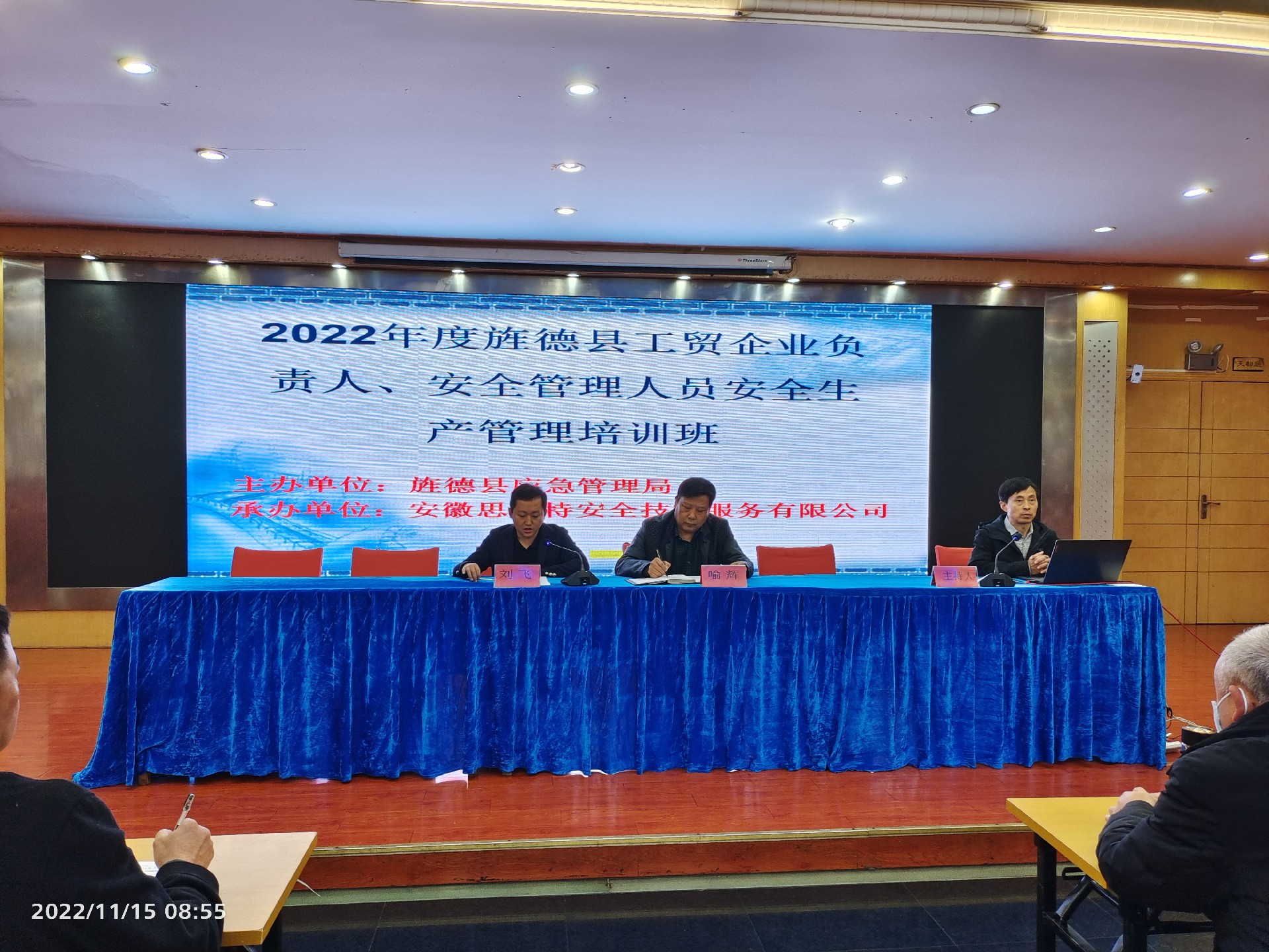 2022年11月15日 旌德縣工貿(mào)企業(yè)主要負(fù)責(zé)人和安全管理人員安全生產(chǎn)管理培訓(xùn)順利開班!
